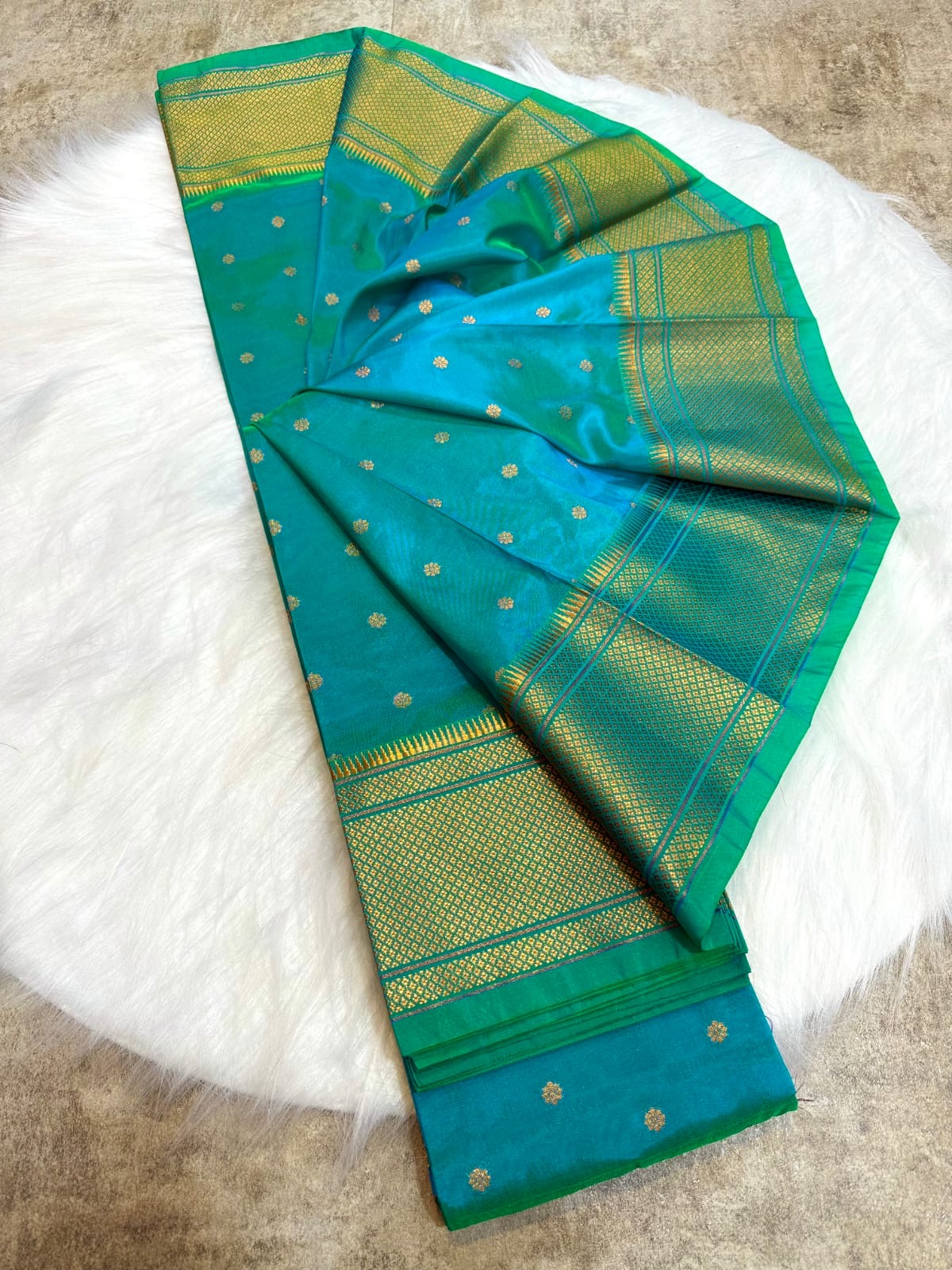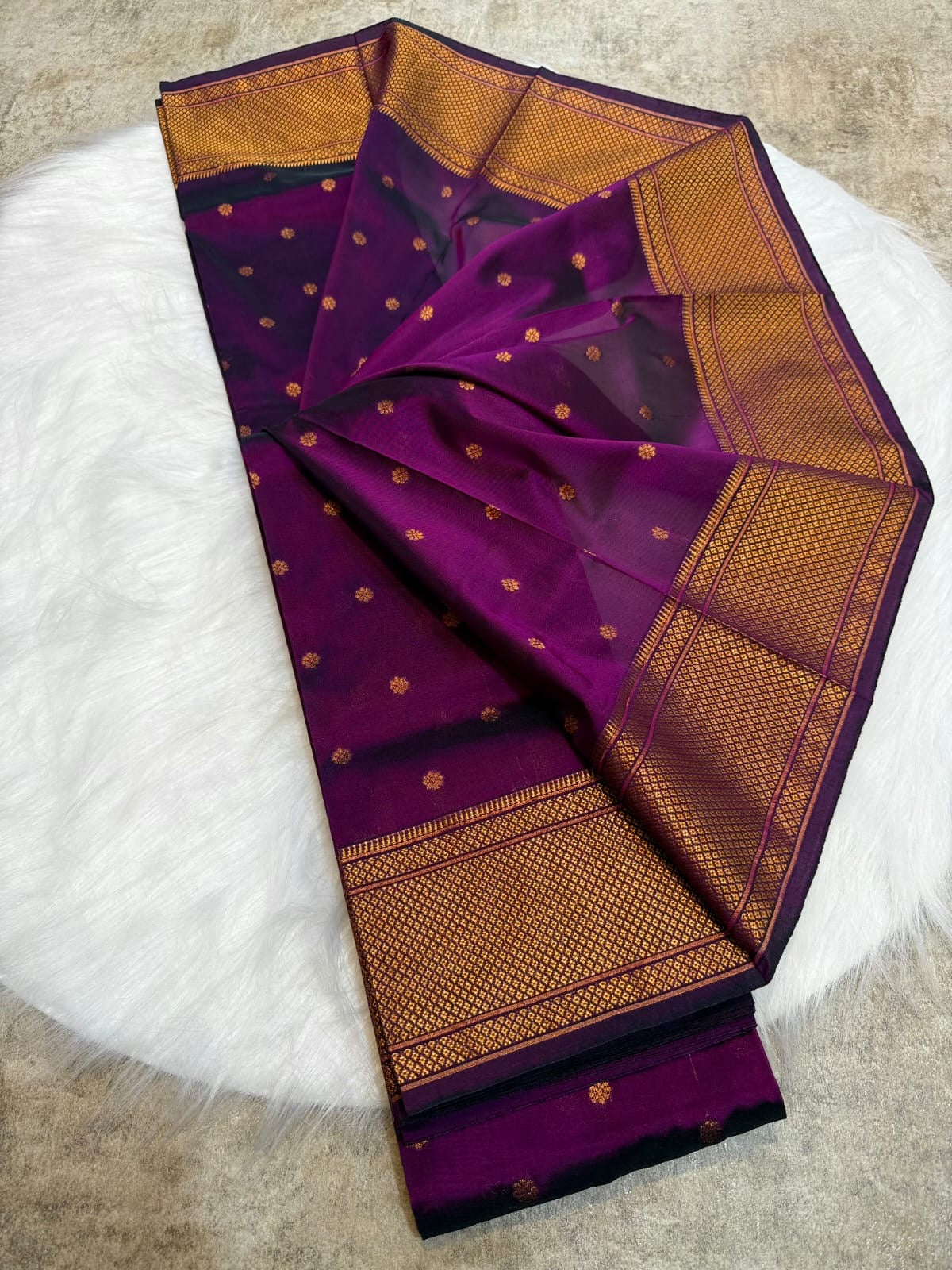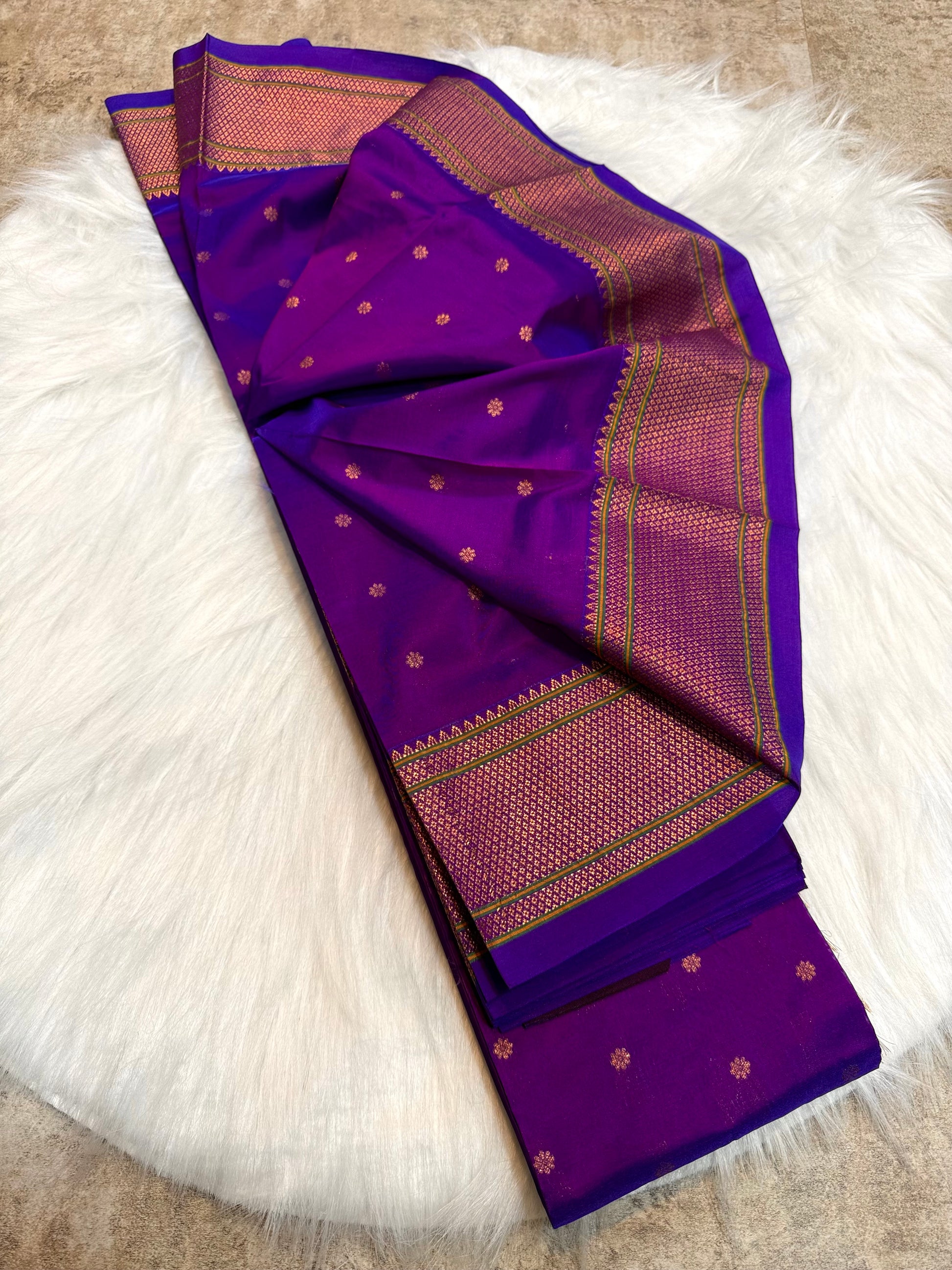 Our Most Trending Kalanjali Paithani with Traditional border. Looks Like Pure Silk. Feels Like Pure Silk